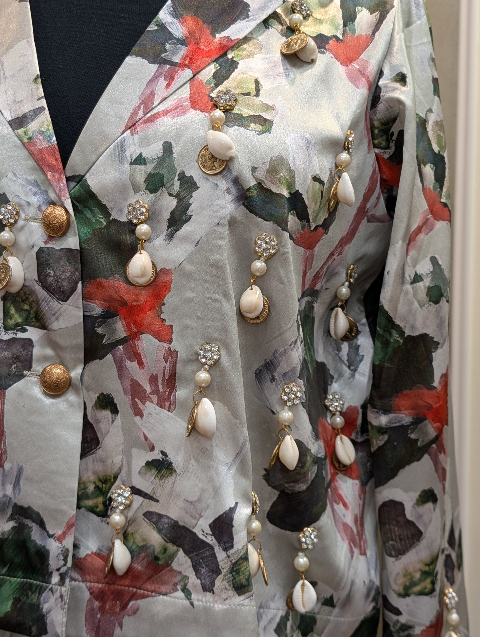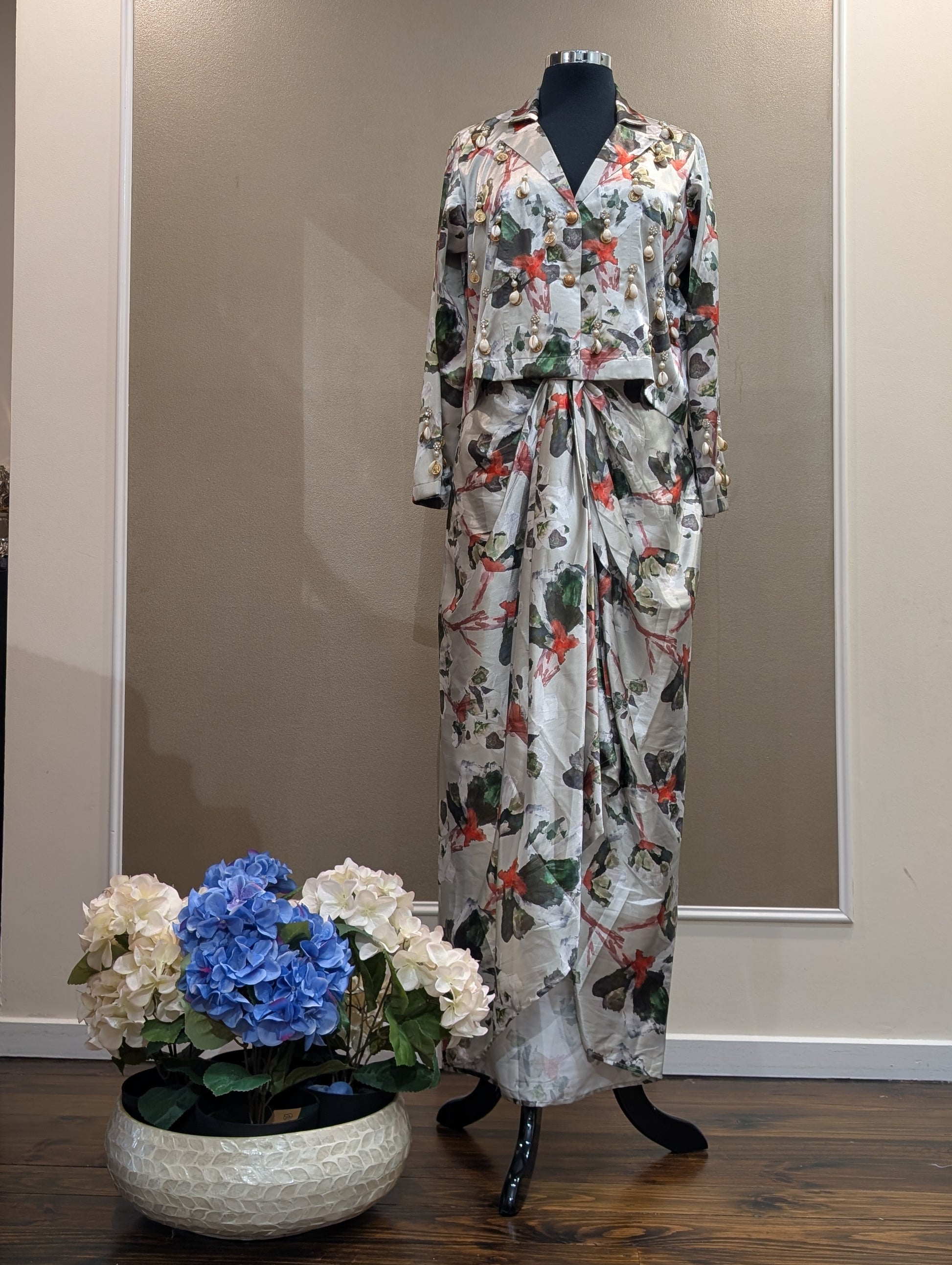 Satin drapes in subtle, dewy prints—elevated with intricate detailing and a fusion twist. ✨